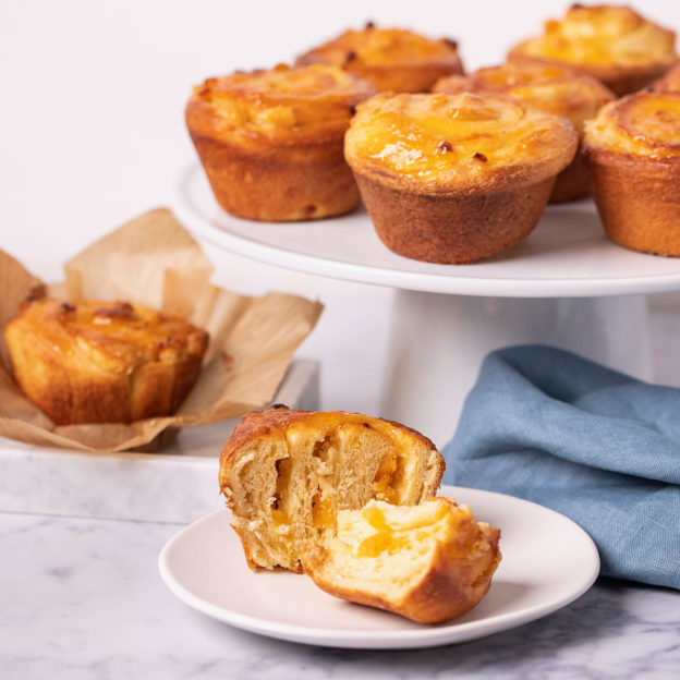 - Preheat oven to 180°C (fan assisted). Bake for 15-20 minutes, until scrolls are golden and cooked. Remove from the oven. Leave for 5 minutes. Heat the apricot jam and pass through a sieve to remove any fruit lumps. Brush the tops of the brioche while they are still hot with the jam to glaze. Allow to cool a further 5 minutes before removing them from the tin. Place on a cooling rack. Serve warm.